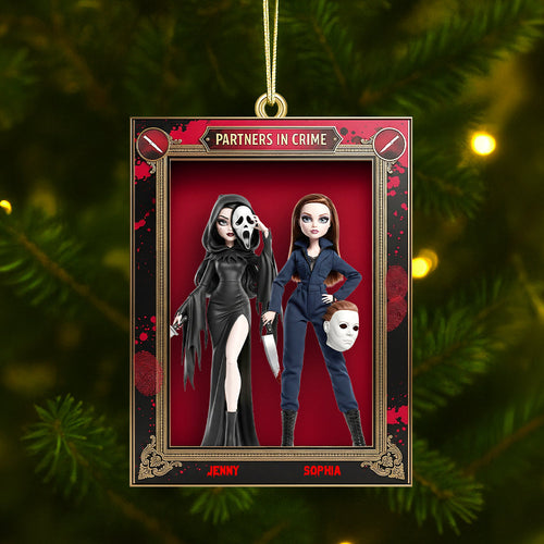 "Partners in Crime" - Horror Dolls Personalized Christmas Ornament - Custom Gift for Best Friends, Horror Enthusiasts, and Collectors