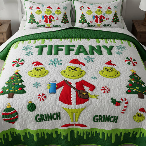 "Spread Holiday Cheer!" - Personalized Grinch Quilt Bed Set - Custom Christmas Gift for Movie Lovers  - Regular price