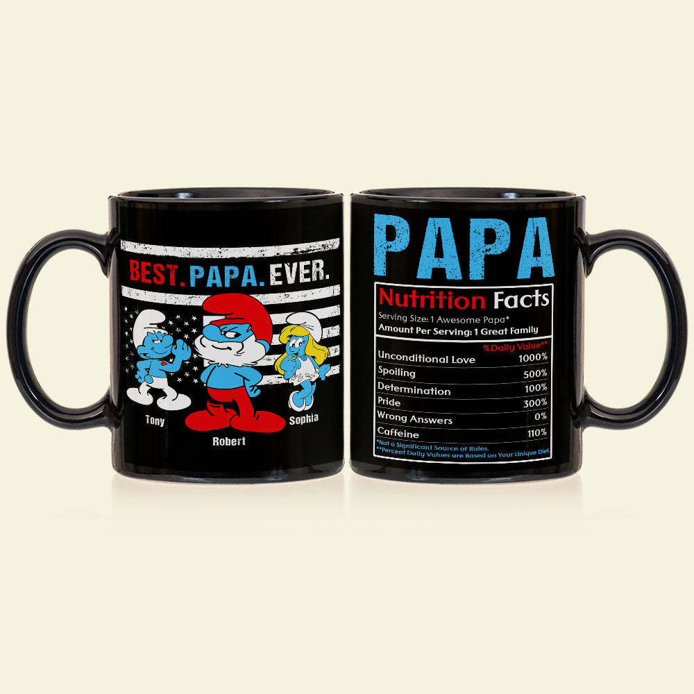 Celebrate the amazing dad in your life with this 'Best Papa Ever' black mug. Featuring charming characters and customizable family names, this personalized gift is perfect for Father's Day, birthdays, or any special occasion. Show your love and appreciation with a thoughtful and unique mug tailored just for him.