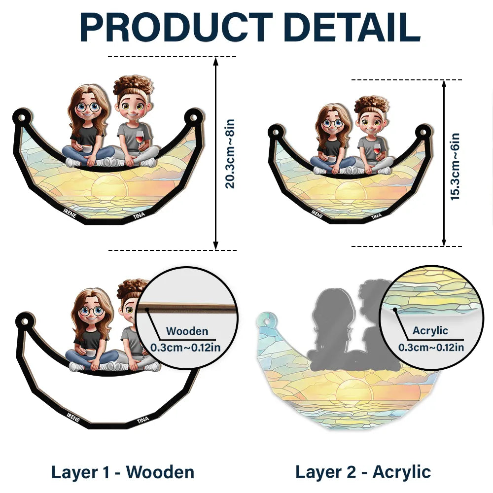 Celebrate your special bond with our Bestie Sister Sitting On The Moon personalized window hanging suncatcher ornament. This unique piece features a heartfelt design, making it the perfect gift for sisters, best friends, or anyone who cherishes meaningful connections. Personalize it with names and make it a cherished keepsake for any occasion such as birthdays, anniversaries, or just because. Brighten up your space and enjoy a daily reminder of love and friendship!