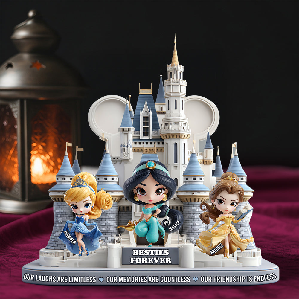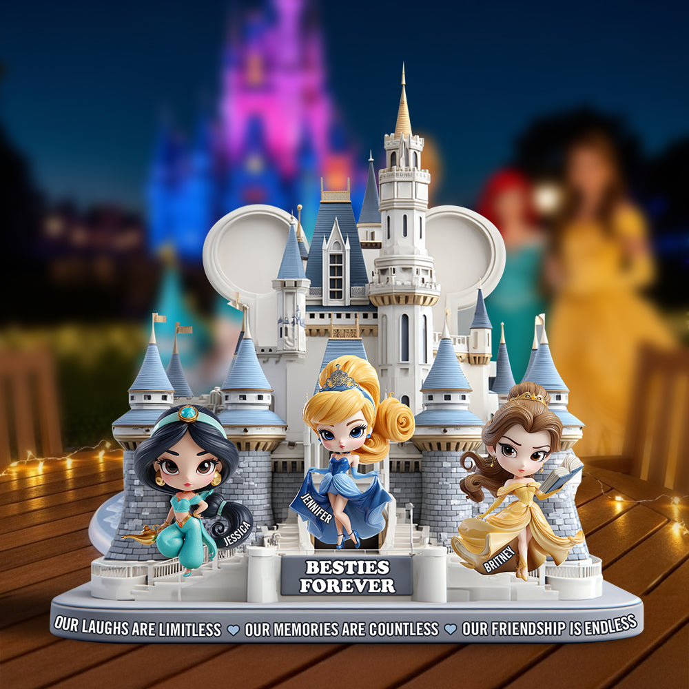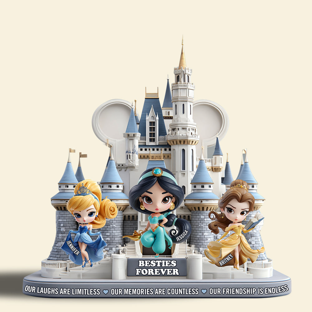 Celebrate your unbreakable bond with our Besties Forever Acrylic Plaque! Featuring beloved characters and the heartwarming quote 'Our Laughs Are Limitless, Our Memories Are Countless, Our Friendship Is Endless,' this personalized gift is perfect for best friends. Customize it with names to create a unique keepsake that brings joy and nostalgia to any occasion!