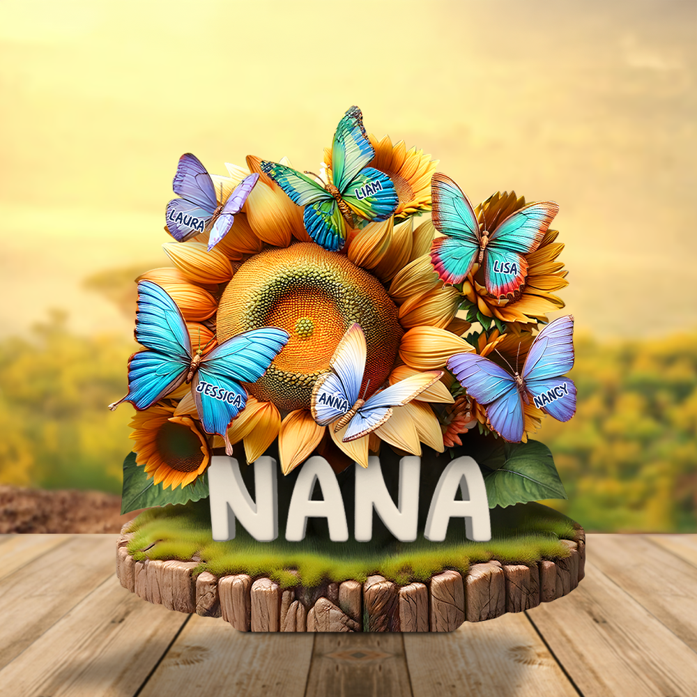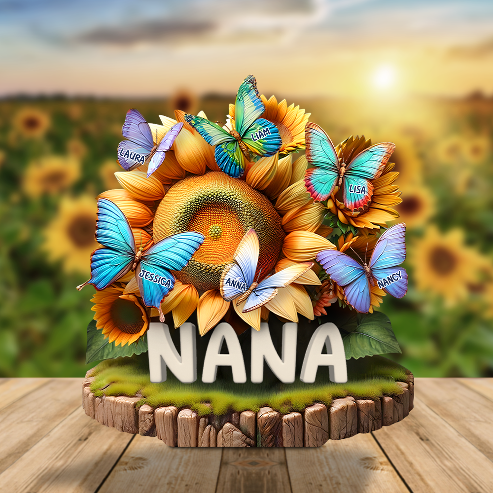 Celebrate the special women in your life with our beautiful Butterfly Kids on Sunflowers Acrylic Plaque. This personalized gift features vibrant butterfly designs that can be customized with names, making it a heartfelt present for Mother's Day, birthdays, or any occasion. It's a perfect way to express love and appreciation for moms, grandmas, or any cherished woman. Bring joy to their day with a unique and meaningful gift that they will treasure forever.