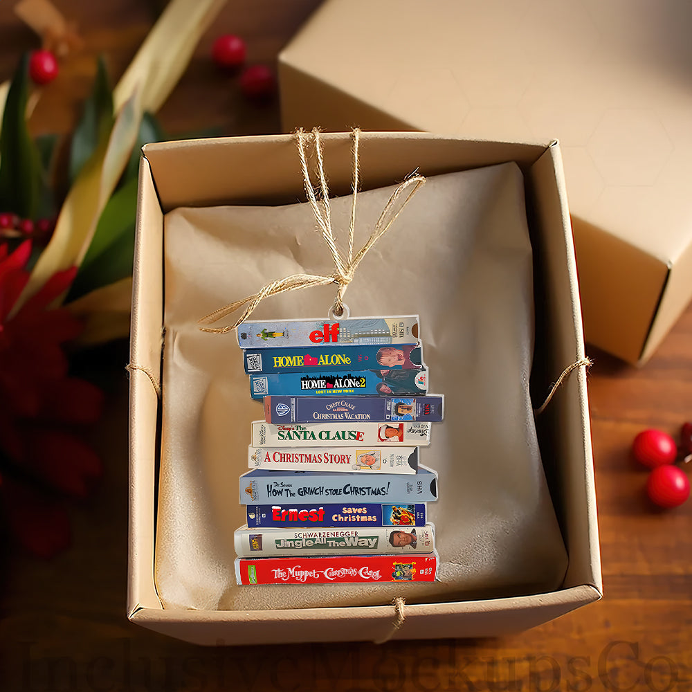 Celebrate your love for classic holiday films with our Christmas Movie Fanatics Acrylic Ornament. This unique decoration features iconic movie covers stacked in a nostalgic design, perfect for adding a touch of festive charm to your tree. An ideal gift for movie buffs and holiday lovers alike, personalize your ornament to create a memorable keepsake.