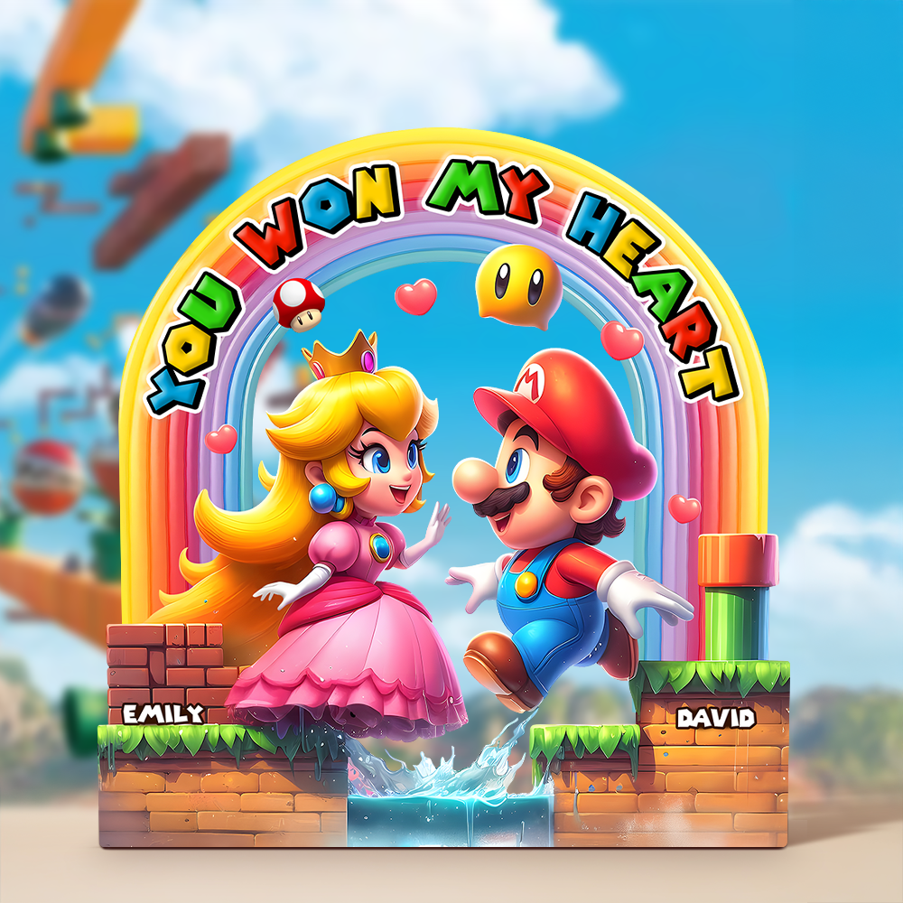 Celebrate your love story with our You Won My Heart personalized couple acrylic plaque. This vibrant design featuring iconic characters makes it the perfect gift for anniversaries, Valentine's Day, or just to remind that special someone how much they mean to you. Customize it with your names for a unique, heartfelt touch that will add joy to any home.