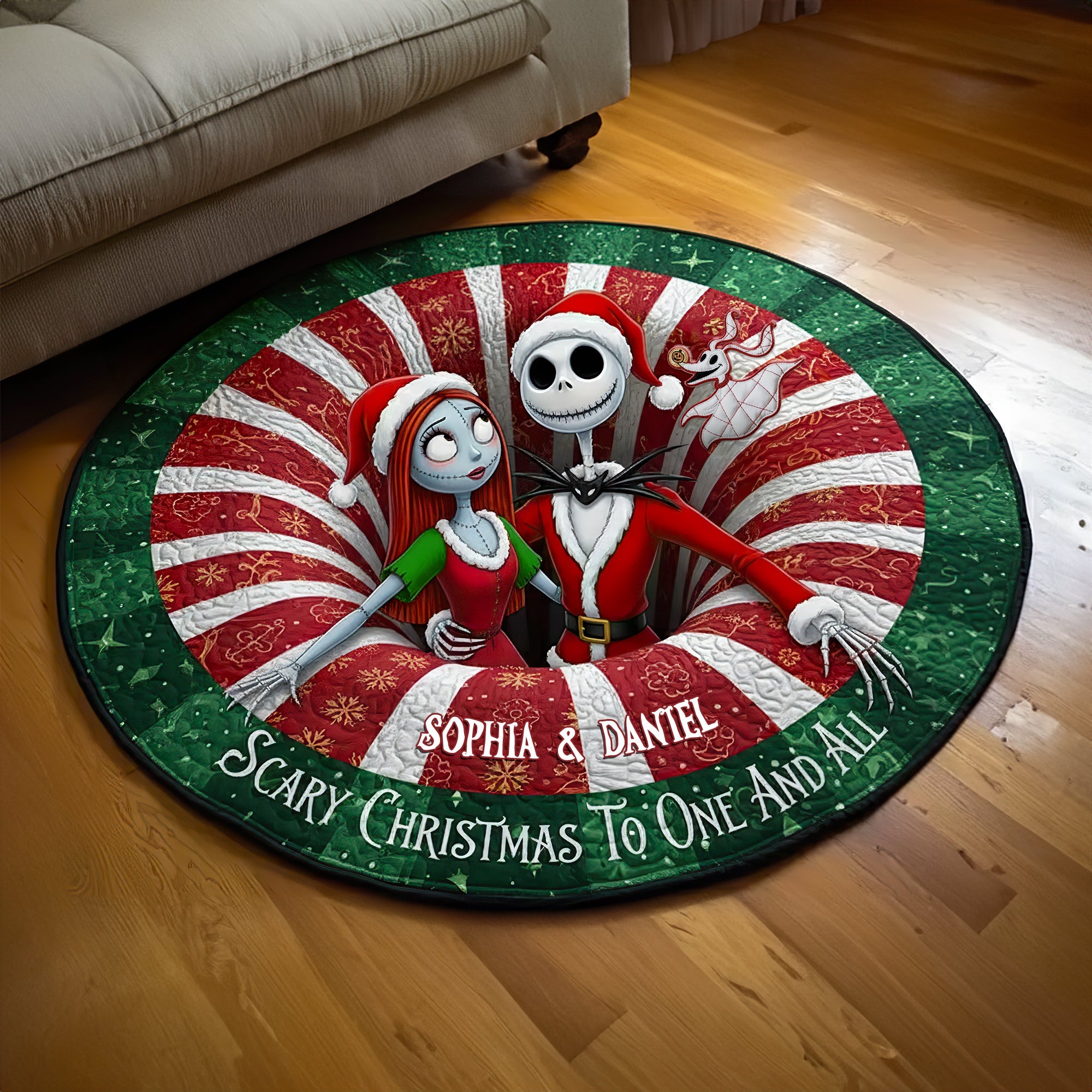 "Scary Christmas To One And All" - Personalized Creepy Cute Couple Round Mat - Unique Gift for Couples
