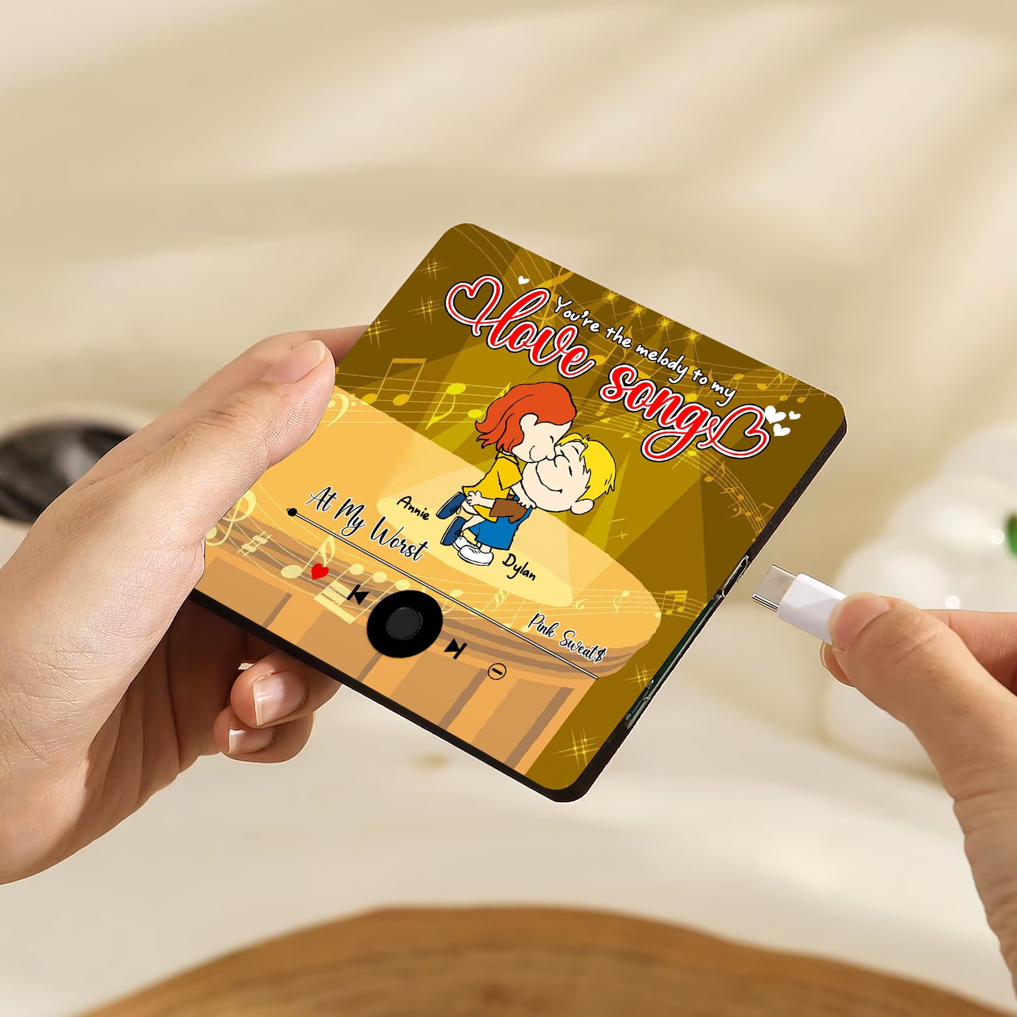 Create a custom acrylic music magnet that combines your favorite photo with a song title and artist name, transforming it into a unique music-themed fridge magnet!
