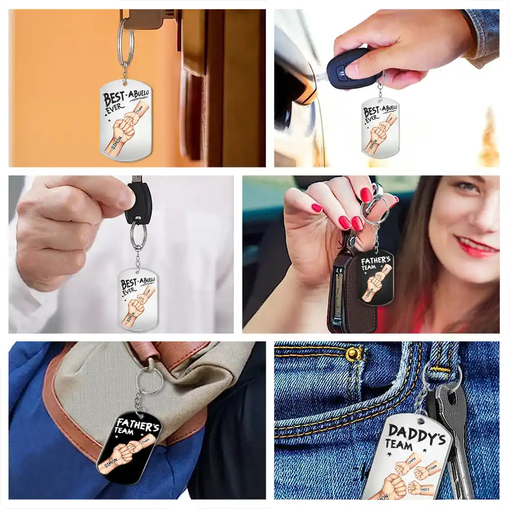Celebrate the bond between dad and his kids with the Daddy's Team Hand Punch - Personalized Aluminum Keychain – a meaningful gift for Father’s Day, Christmas, Birthday, Thanksgiving, or just because. This awesome keepsake is perfect for a father, making him feel appreciated, joyful, and proud every time he reaches for his keys.
