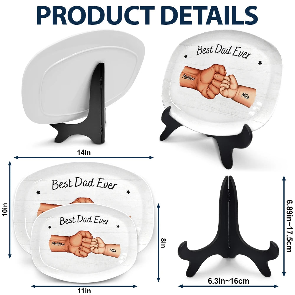 Celebrate family bonds with our 'Daddy's Team Hand Punch' personalized plate. This unique design features the strong fists of family members, each customizable with names. Perfect for showcasing your family's love and unity, this plate makes for a heartfelt gift for Father's Day, birthdays, or any special occasion. Bring joy to both the sender and receiver with a gift that is truly personal and meaningful.