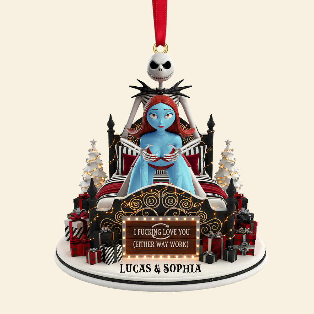 Celebrate your unique love story with our personalized Funny Couple Christmas Ornament! This whimsical design, featuring beloved spooky characters, is perfect for couples who enjoy a touch of humor in their holiday decorations. Customizable with your names, this ornament makes for a memorable gift that will bring joy to both the sender and recipient. Ideal for Christmas, anniversaries, or just because!