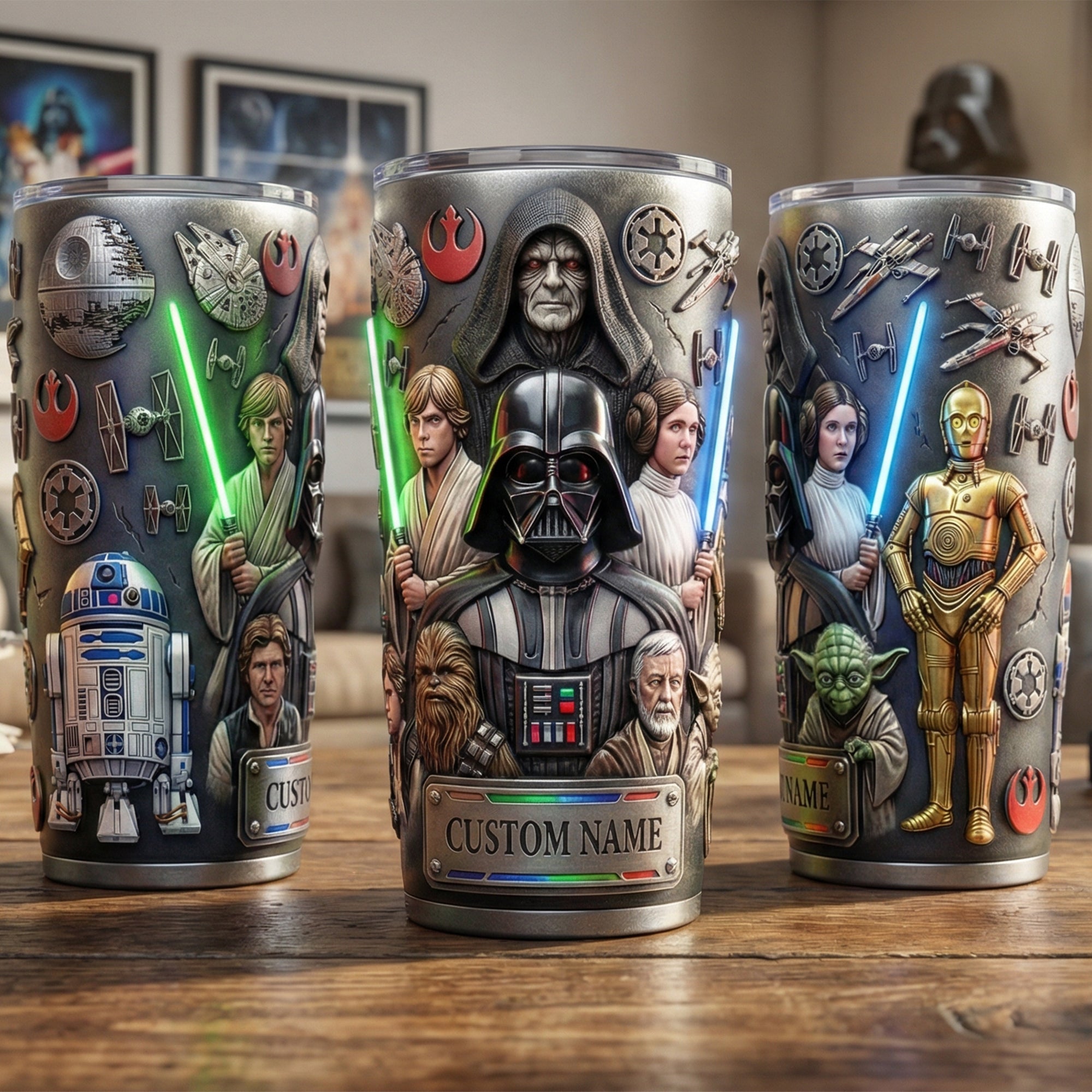 Celebrate the cosmic adventure with our Futuristic Space Warrior Tumbler, perfect for fans of science fiction and the galaxy far, far away. This tumbler features an intricate design showcasing iconic characters and symbols, making it a standout gift for birthdays, holidays, or any special occasion. Personalize with a name to create a meaningful keepsake that will be cherished by friends, family, or colleagues.