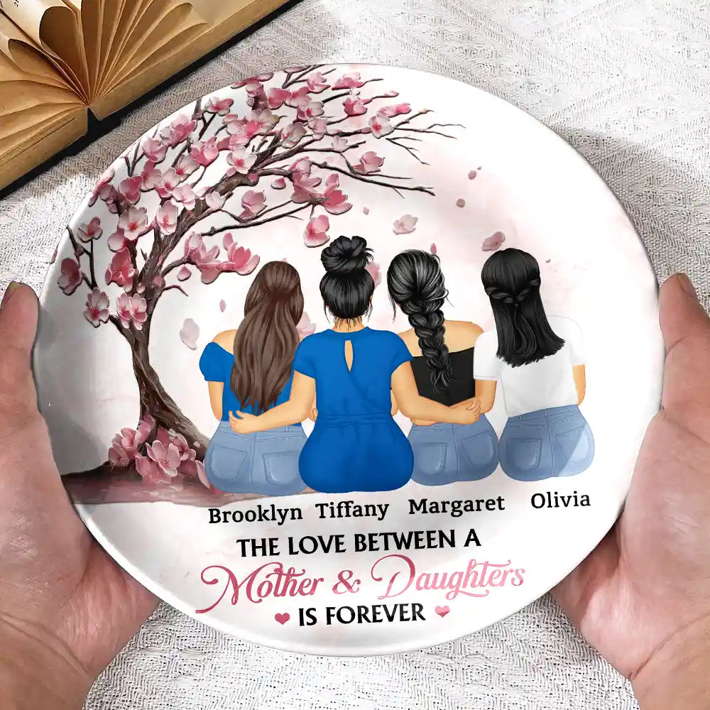 Mother & Daughters - Forever Linked Together Ceramic Plate - Personalized Gift for Mom & Grandma
