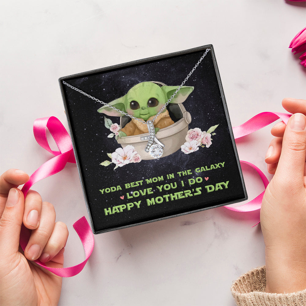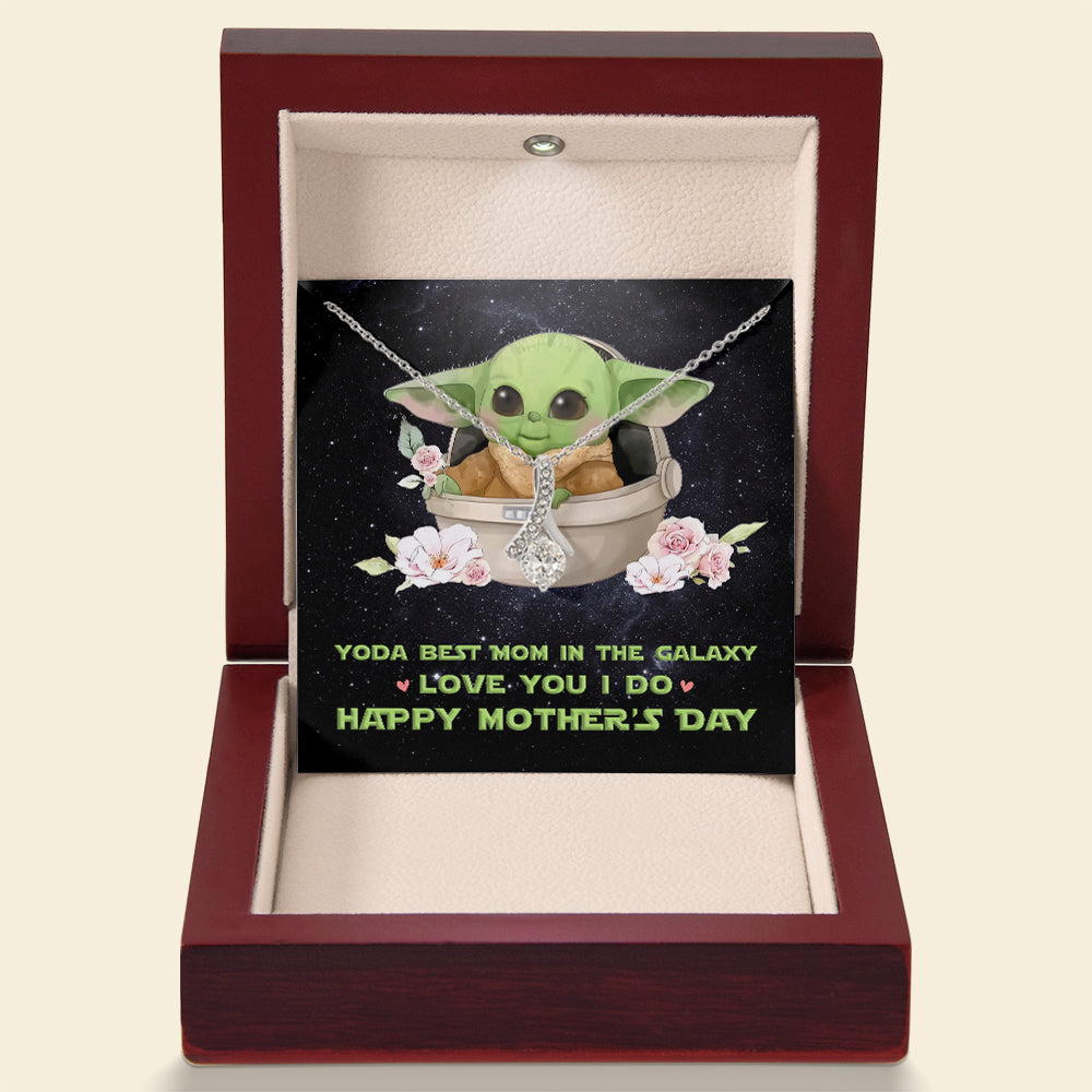 Celebrate your mom's immense love with our 'Galaxy's Best Mom Necklace'. Featuring a charming design inspired by beloved sci-fi themes, this necklace is nestled in an elegant gift box with a heartfelt message. The perfect gift for Mother's Day to show your mom she's the best in the universe.