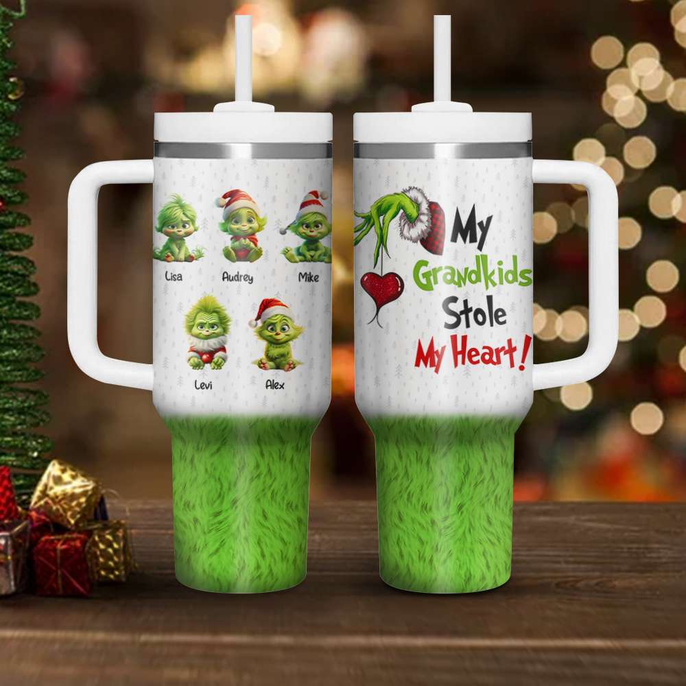 Personalized Christmas Green Monster Family 40oz Tumbler with Handle