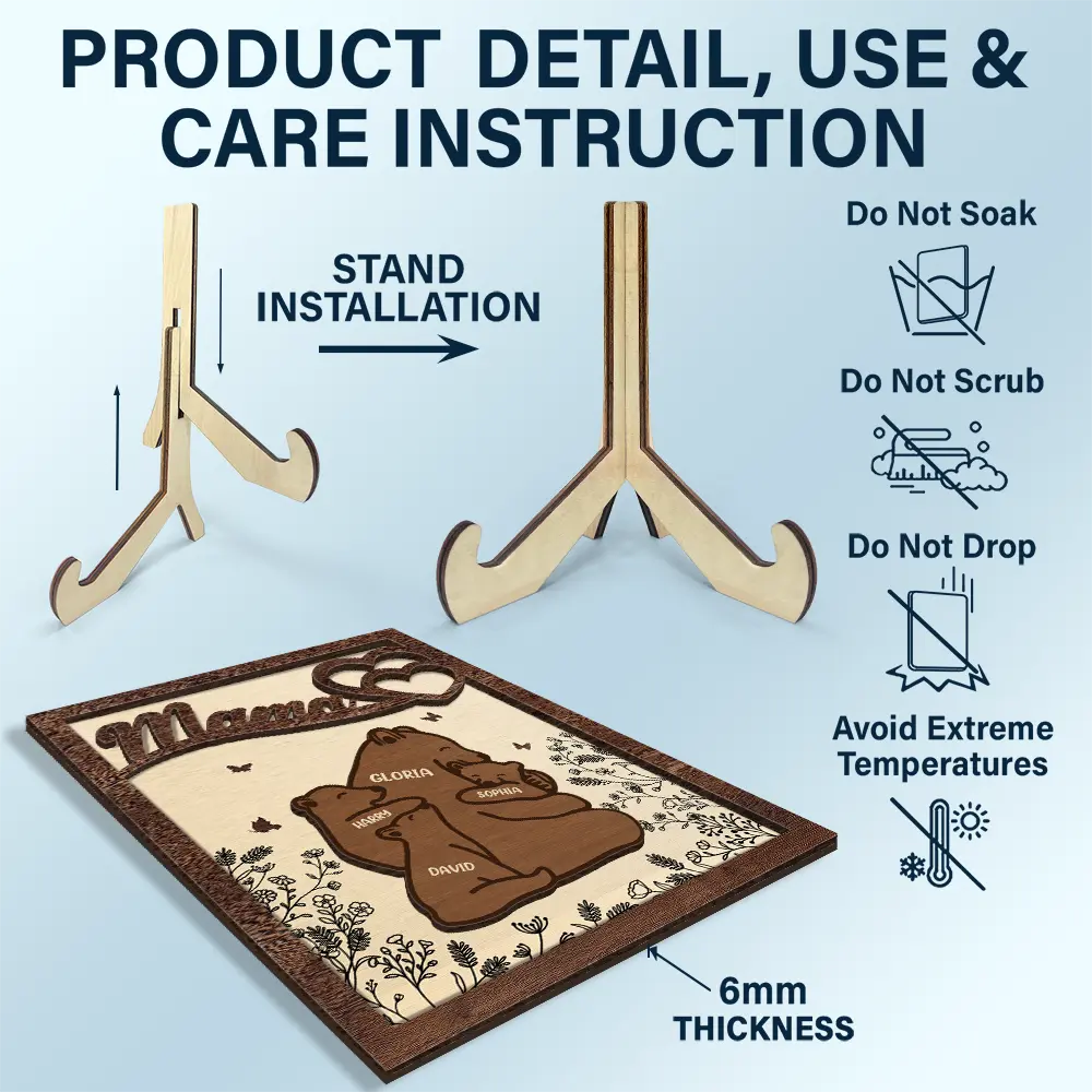 "A Mother's Love is Forever" - Personalized Nana Mama Bear 2-Layered Wooden Plaque - Gift for Mom and Grandma