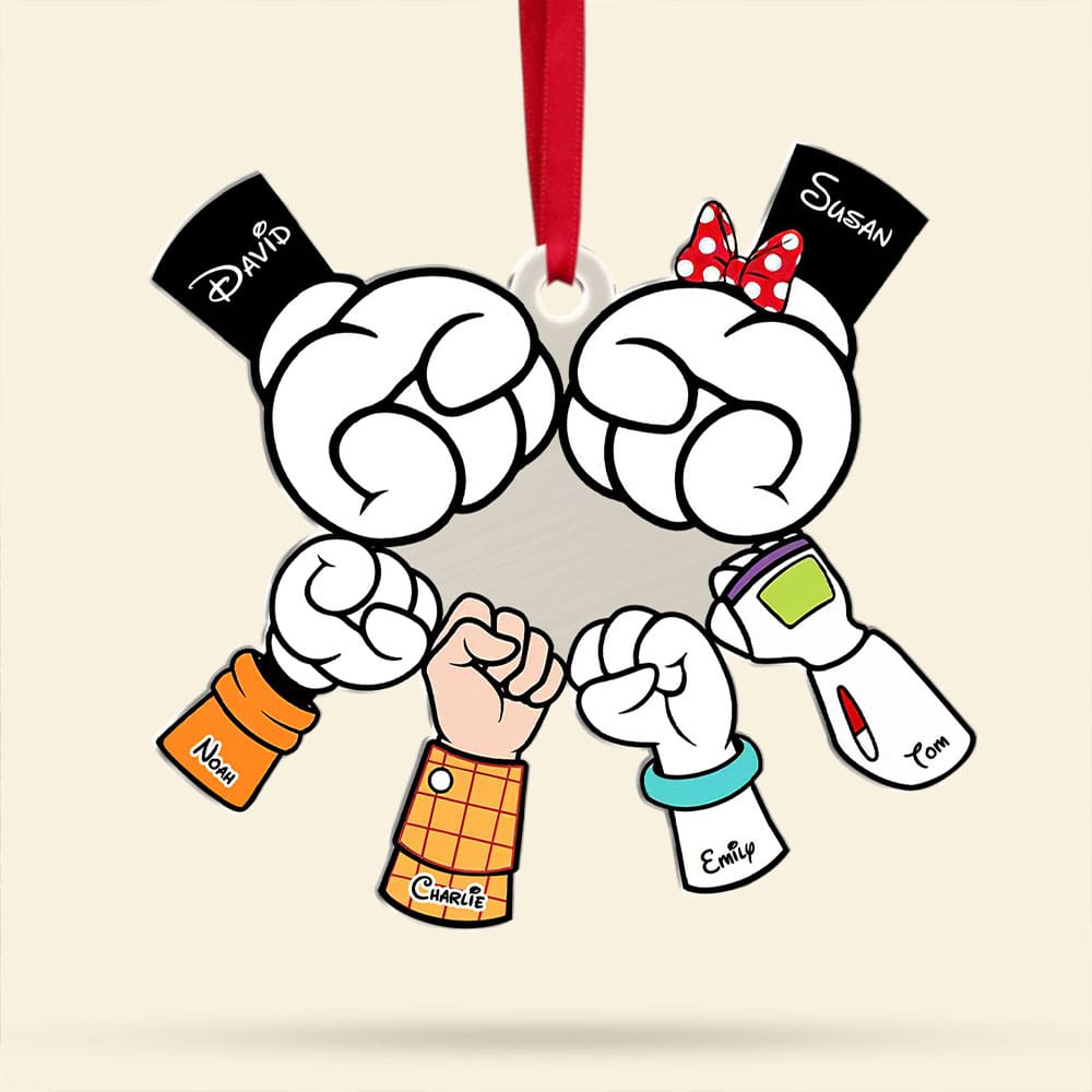Celebrate the joy of togetherness this holiday season with our Personalized Family Christmas Ornament. Designed with a delightful family fist bump theme, this ornament is perfect for commemorating your unique family bond. Customize each hand with your family members' names to create a treasured keepsake that will brighten up your Christmas tree for years to come. A perfect gift that adds a personal touch to your festive celebrations.