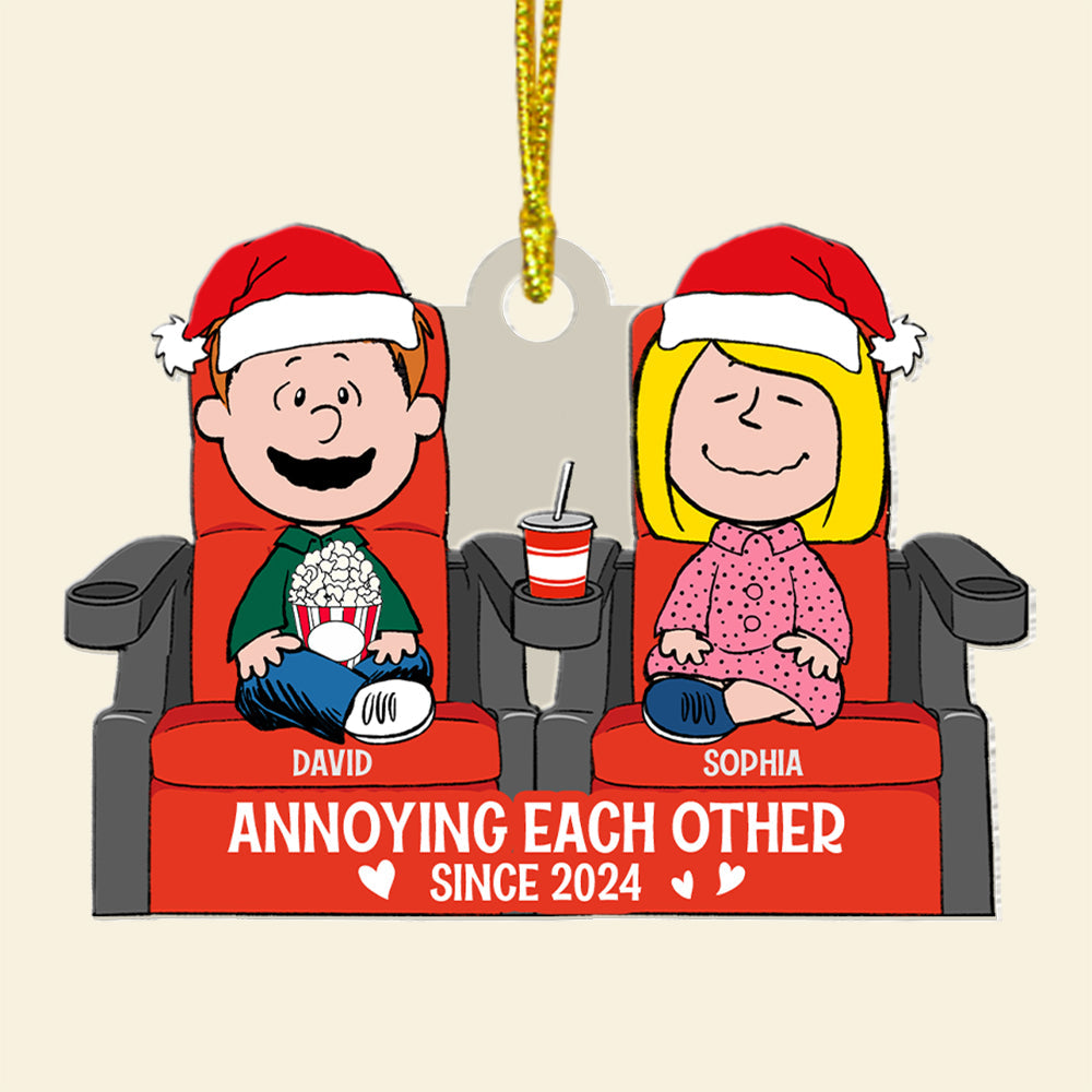Celebrate your unique relationship with our Personalized Couple Ornament featuring a humorous movie theme. Perfect for adding a touch of fun to your Christmas tree, this ornament can be customized with your names and a special date. Ideal as a gift for any couple who loves to laugh and enjoy each other's company!