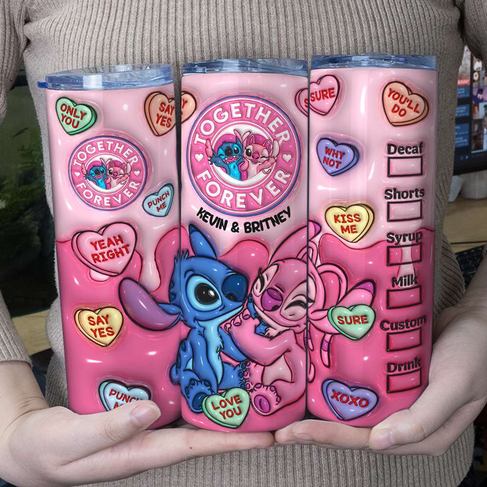 Celebrate your love with our Together Forever personalized tumbler, featuring adorable designs and customizable options. Made for couples, this tumbler is perfect for keeping beverages hot or cold, while showcasing your bond. Ideal for anniversaries, weddings, or just because. Personalize it with names and special messages to create a heartfelt gift that brings joy to any occasion.