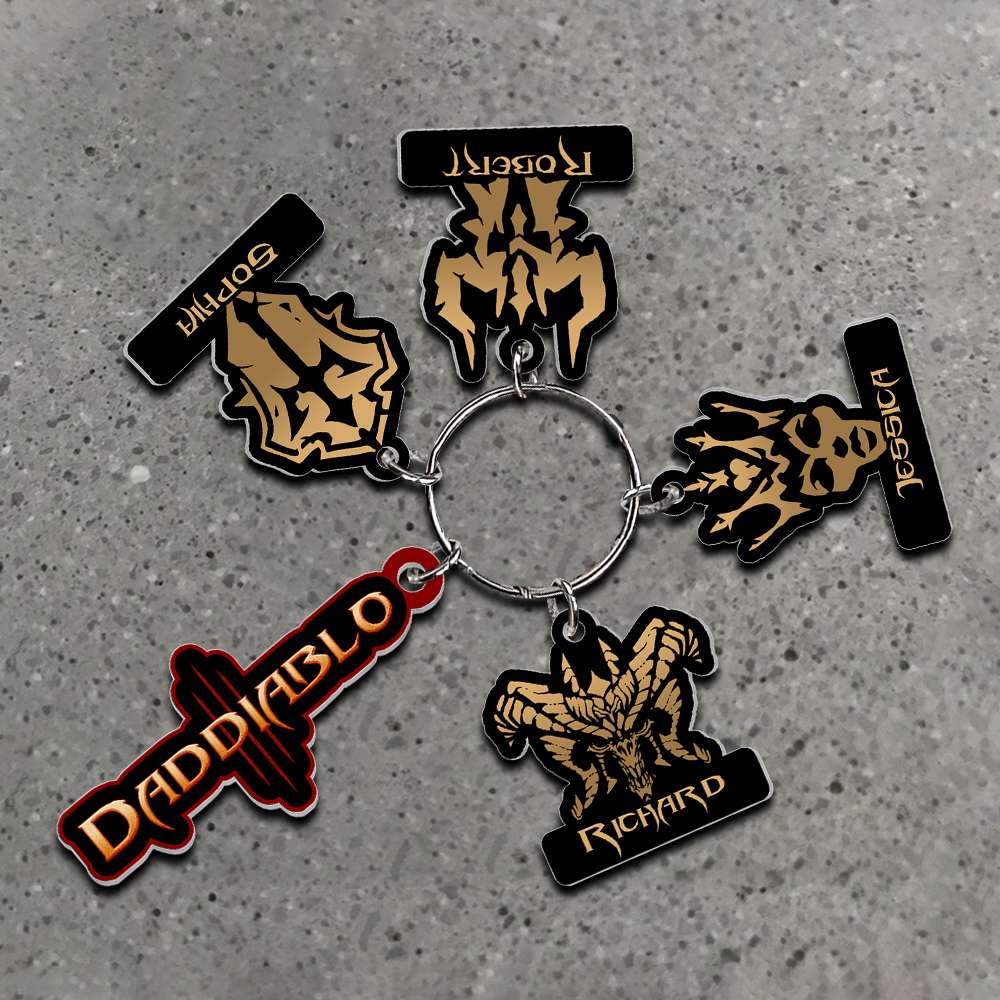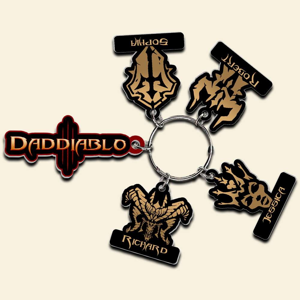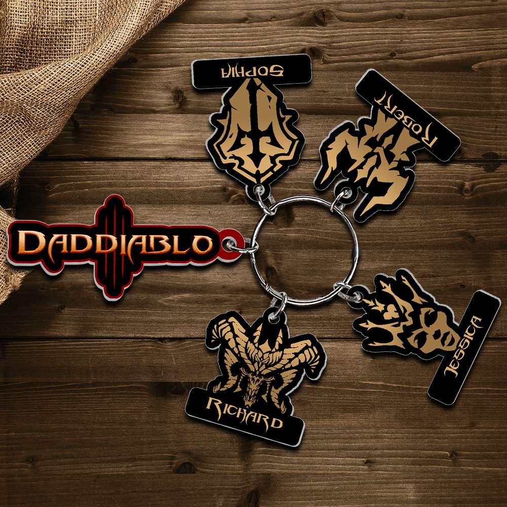 Celebrate your dad's unique spirit with our DADDIBLO personalized keychain. Perfect for Father's Day or any special occasion, this keychain features customizable names and a bold design inspired by popular culture. A meaningful gift for dads who love something unique!