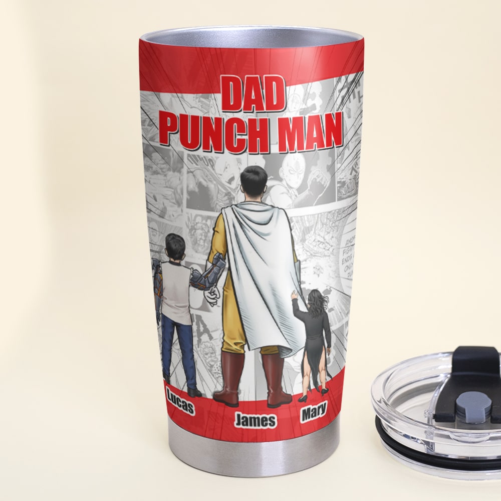 Celebrate your superhero dad with our 'Dad Punch Man' Personalized Tumbler. This custom gift features a fun, comic-inspired design that can be personalized with your family members' names. Perfect for Father's Day, birthdays, or any special occasion. Show your dad he's the hero of your family!