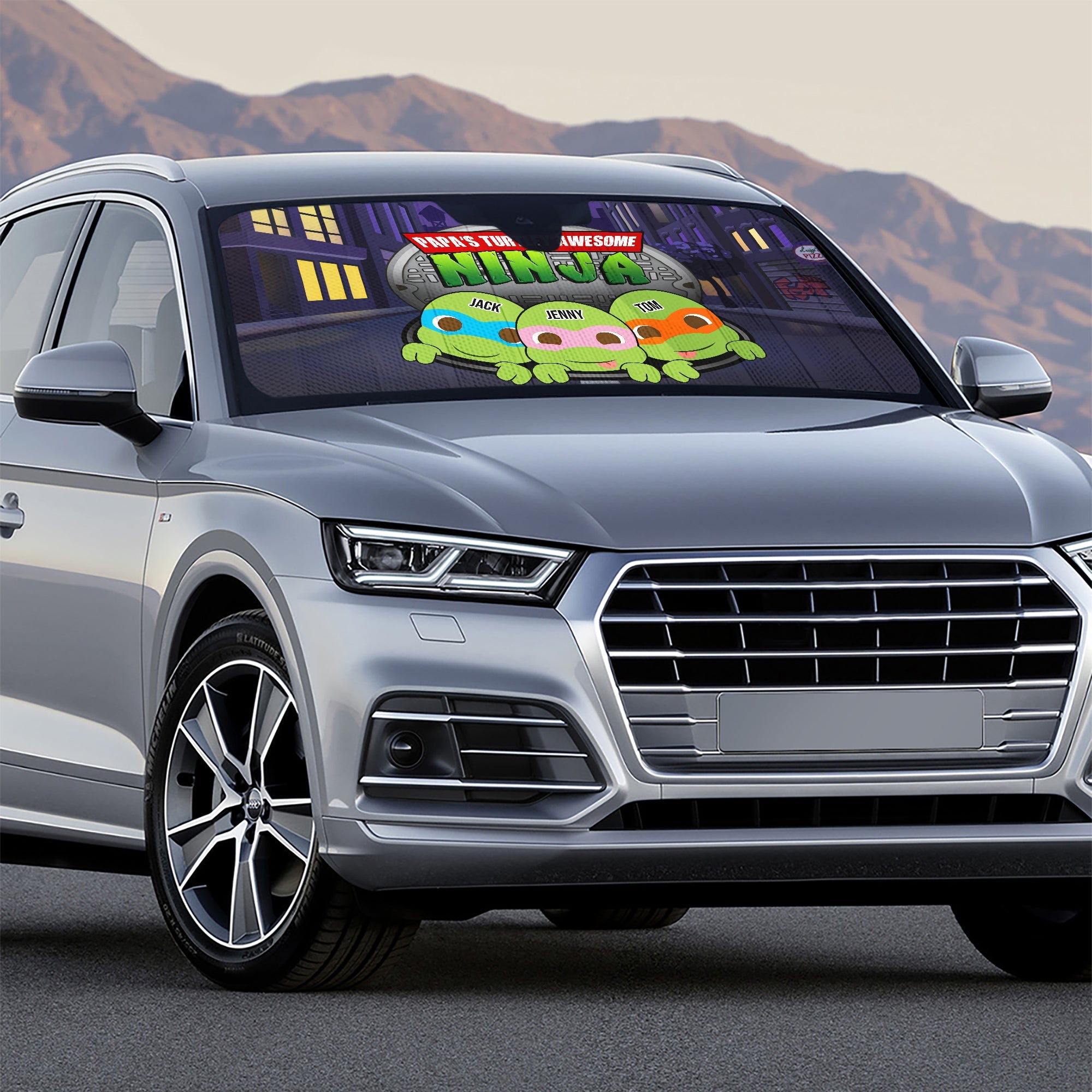 Surprise your dad with this personalized Ninja Turtle windshield sunshade, featuring custom names and a fun, vibrant design. Perfect for dads who love pop culture, this unique gift will bring a smile to his face while protecting his car from the sun.