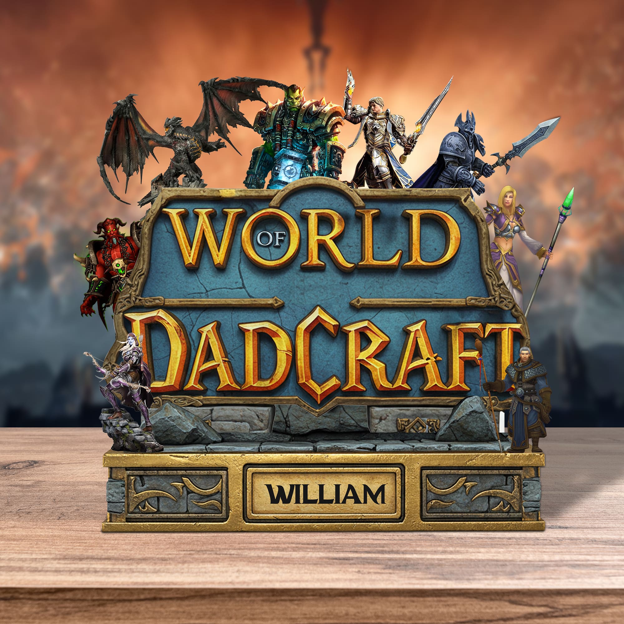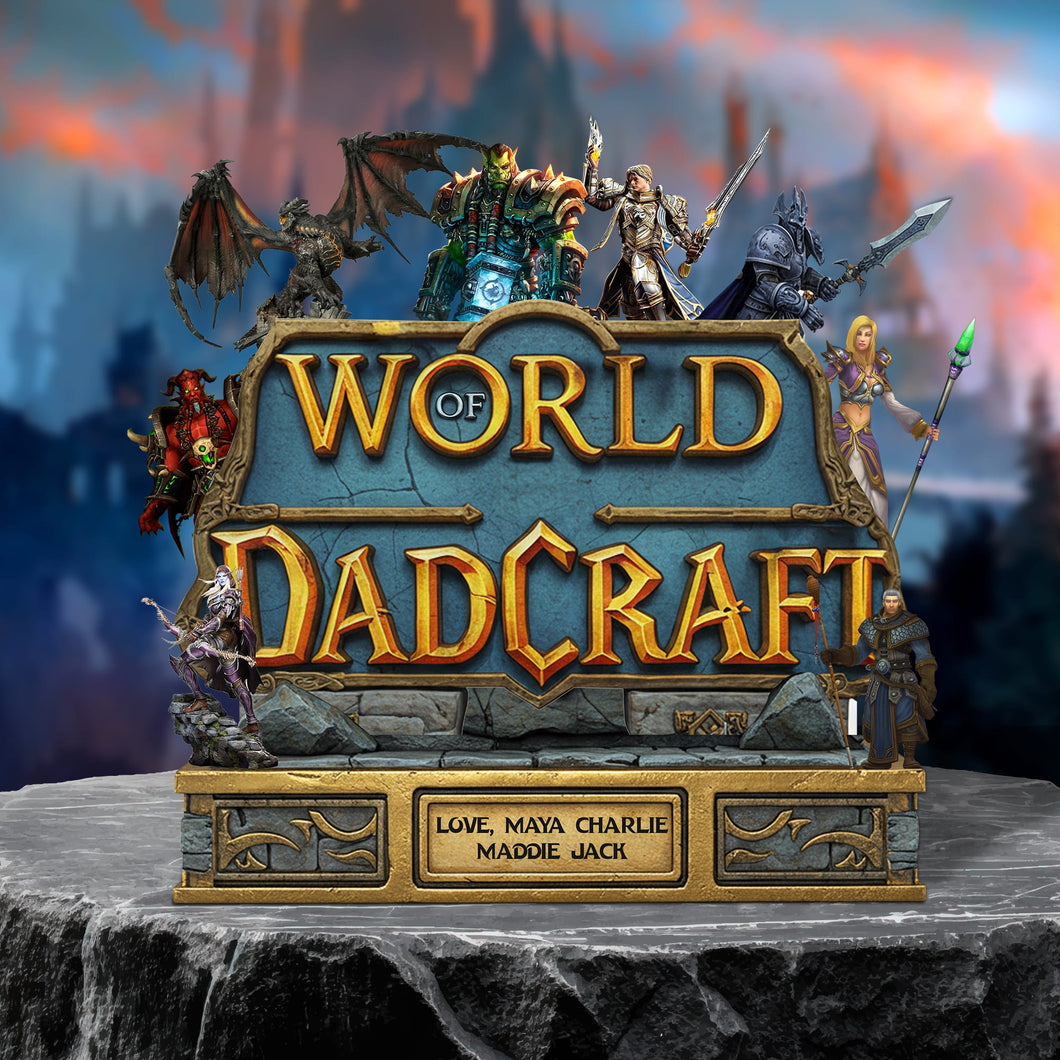 Celebrate your dad's love for gaming with our personalized acrylic plaque, themed around 'World of DadCraft'. This custom gift makes a heartfelt addition to any gaming space. Perfect for Father's Day, birthdays, or just to show appreciation, each plaque is uniquely crafted to reflect your dad's personal connection to gaming. Add a touch of love with personalized names for a special finish!
