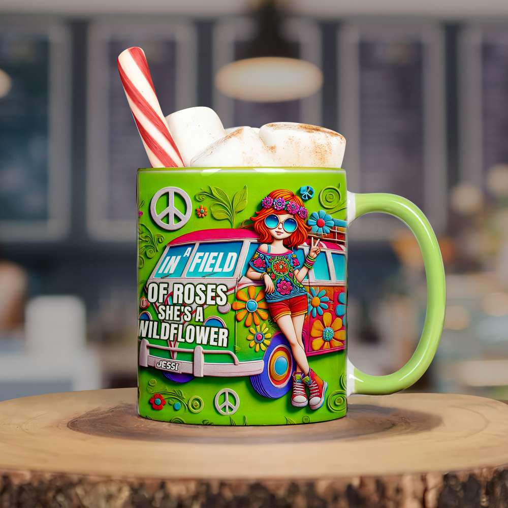 Embrace your inner wildflower with this Personalized Hippie Style Accent Mug. Featuring vibrant colors and a whimsical design, this mug is perfect for those who love to stand out. Customize it with a name to make it a unique gift for someone special. Whether for a birthday, anniversary, or just because, this mug brings joy and a touch of hippie charm to any occasion.