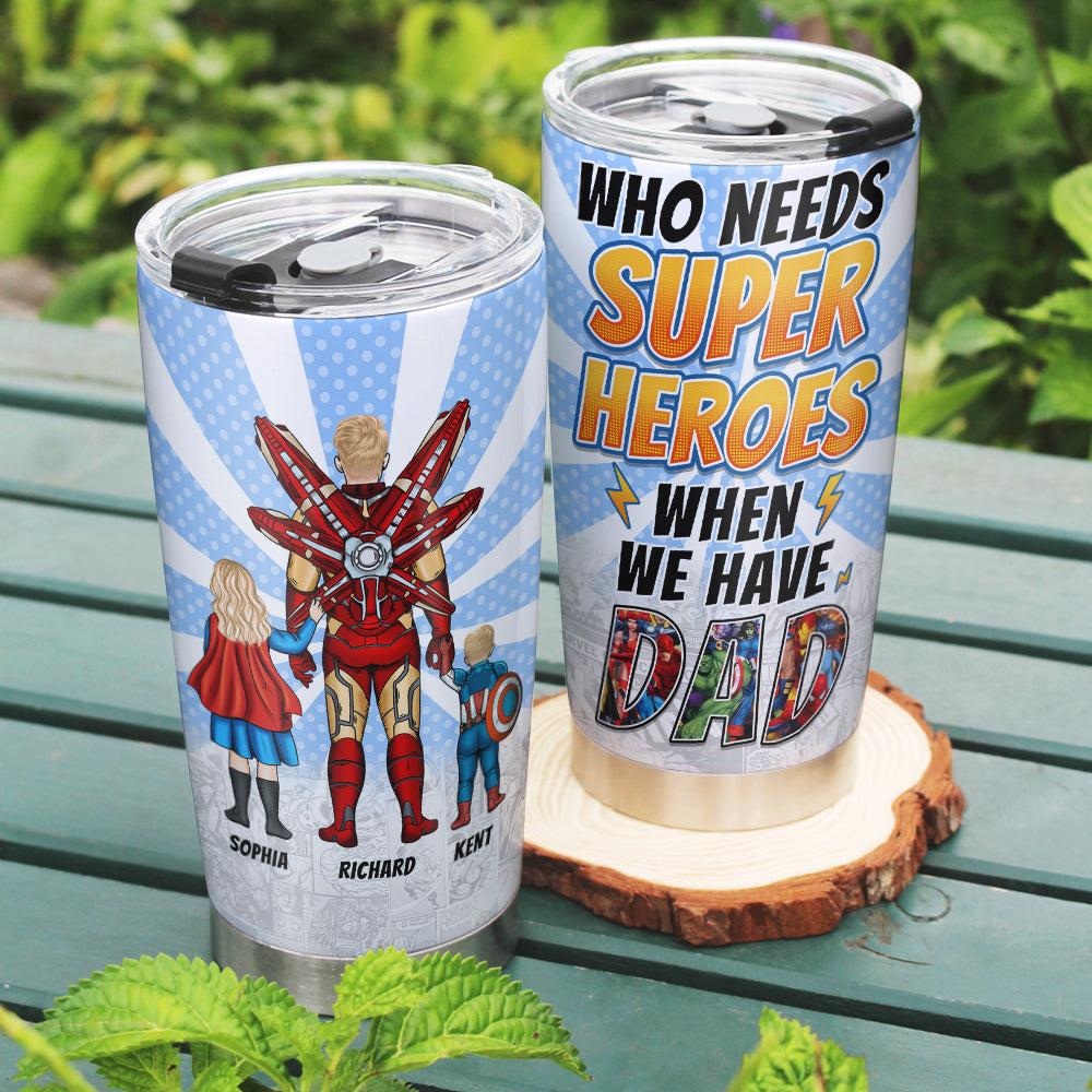 Celebrate the hero in your life with our Personalized Superhero Dad Tumbler. Perfect for Father's Day, this customizable tumbler features a unique superhero-themed design, allowing you to add names for a personal touch. Keep your drinks at the perfect temperature while showing your appreciation for the dad who's always saving the day.