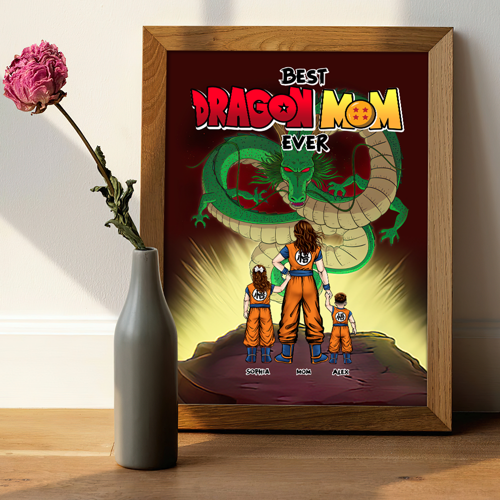 Celebrate the power of a mother's love with our Best Dragon Mom Ever Personalized Canvas Print. Perfect for fans of pop culture, this vibrant design can be customized with your names, making it an unforgettable gift for Mother's Day or any special occasion.