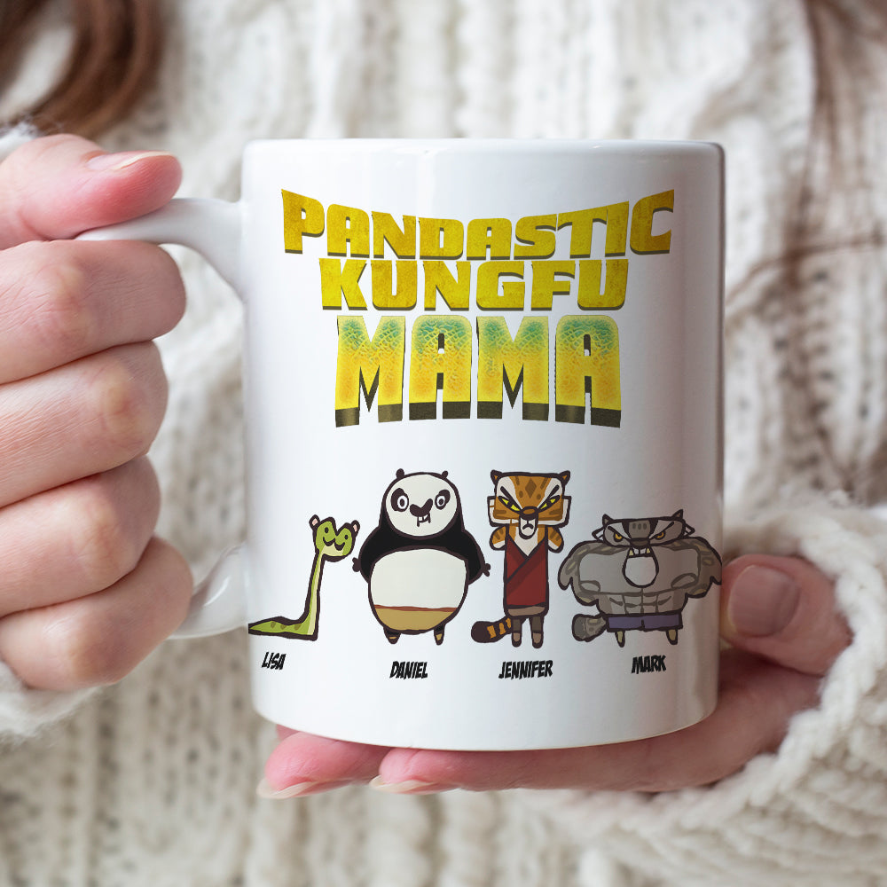 Celebrate your mom's unique personality with our 'Pandastic Kung Fu Mama' personalized coffee mug. Featuring adorable, themed characters and customizable names, this mug is a perfect Mother's Day gift that adds a touch of fun and love to every sip.