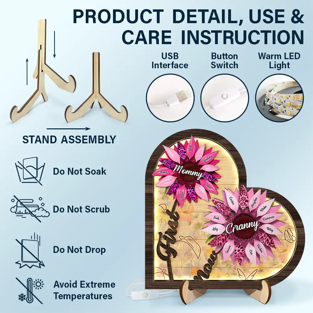 Sunflower First Mom Now Grandma - Personalized LED Light Wooden Plaque