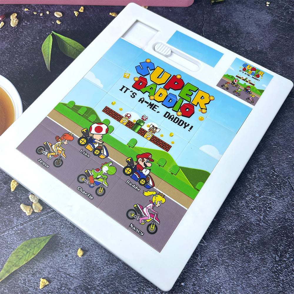 Delight the dad or grandpa in your life with our Super Dad Sliding Puzzle, a fun and engaging puzzle that can be personalized with names. Featuring a vibrant design inspired by classic gaming culture, this puzzle not only entertains but also makes for a heartfelt gift. Perfect for Father's Day or any special occasion that celebrates fatherhood. Add a unique touch by customizing it with your loved one's name for a memorable experience!