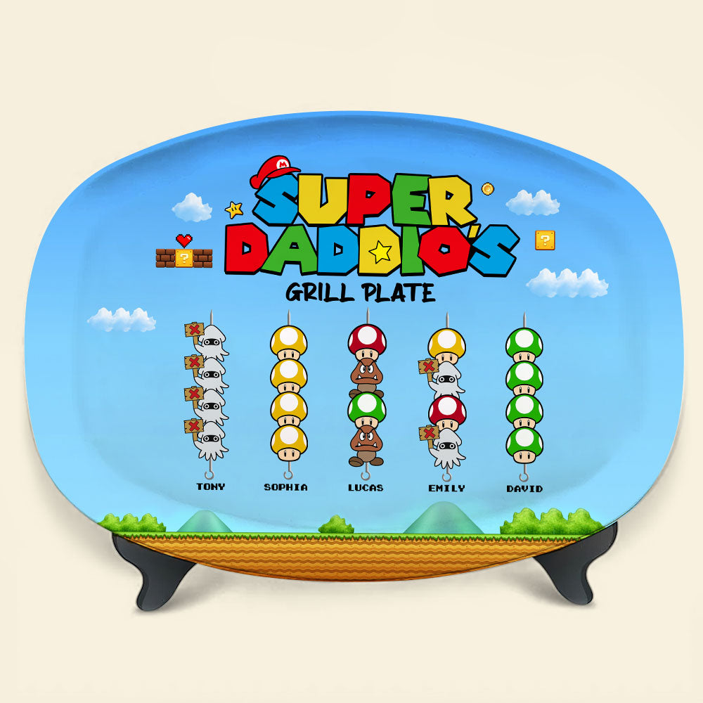 Celebrate family BBQ moments with our Personalized Super Dad Grill Plate! Featuring whimsical gaming-inspired designs with individual family member names, this resin plate is perfect for dads who love both grilling and gaming. Customize it with your loved ones’ names for a truly unique gift that combines fun and functionality.