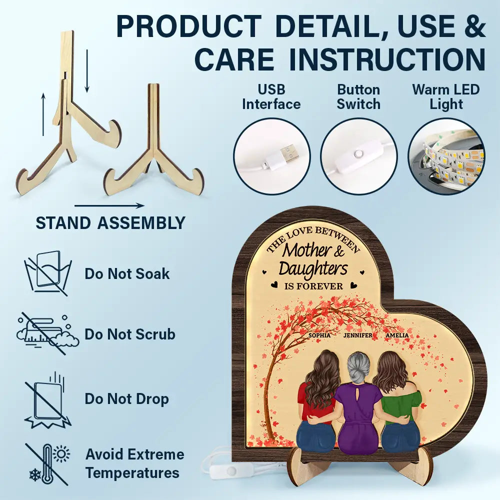 The Love Between Mother & Daughters Is Forever - Personalized LED Light Wooden Plaque - Unique Gift for Moms, Grandmas, and Daughters