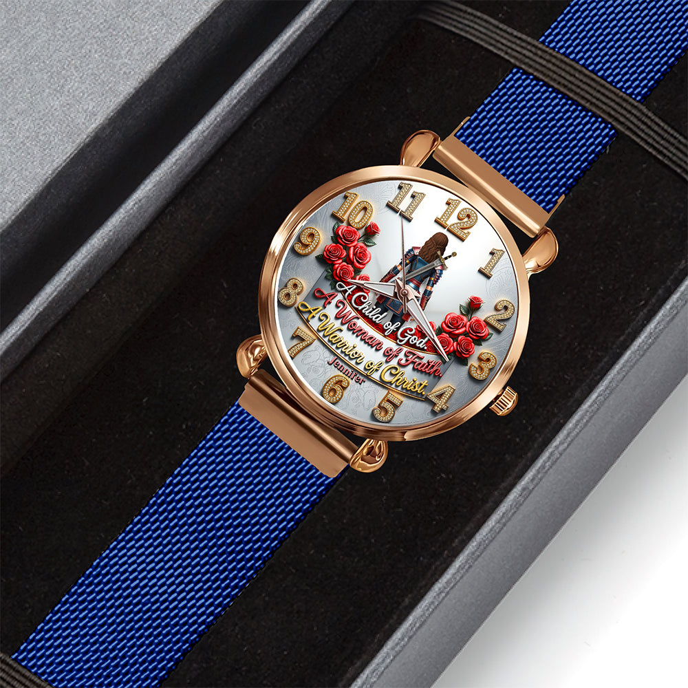A Child of God – A Woman of Faith, A Warrior of Christ - Personalized Mesh Strap Quartz Watch for Christian Women